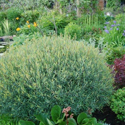 Дуже компактний і вишуканий кущ, прекрасно переносить формуючу обрізку, якій їй можна надати майже будь-яку форму - в цій верби величезний дизайнерський потенціал. Прекрасно підійде для посадки в живих огороджннях в регіонах з більш холодним кліматом, а також для листяних садів. Кущ напівкруглої форми, досягає до 2 м заввишки і до 3 м в діаметрі з численними тонкими червоними пагонами і невеликим сріблясто-зеленим листям.