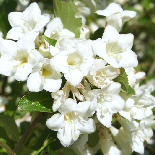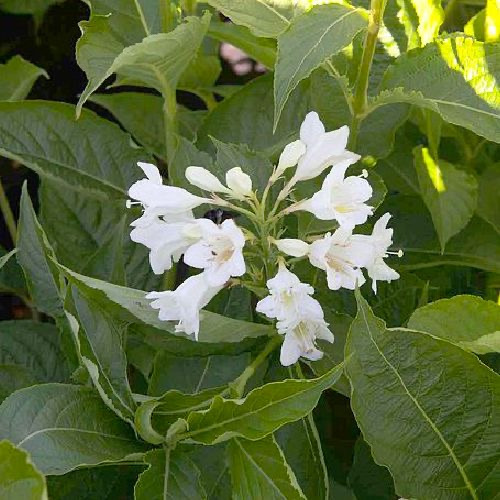 Декоративний кущ середньої величини, висотою до 2 м з густою кроною і розлогими пагонами. Гібрид вейгели квітучої та корейської. Цвіте чисто білими квітами, що досить рідко зустрічається у вейгели.