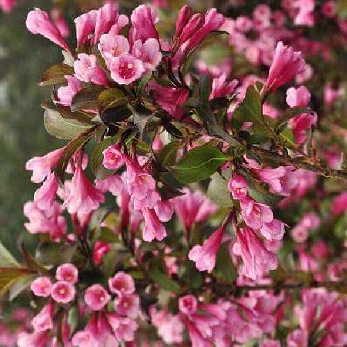 Опис: Вейгели - одні з найбільш красивоквітучих листопадних чагарників, з великими, лійкоподібними квітами різного забарвлення, поодинокими або зібраними в невеликі суцвіття. Схильні до повторного цвітіння.