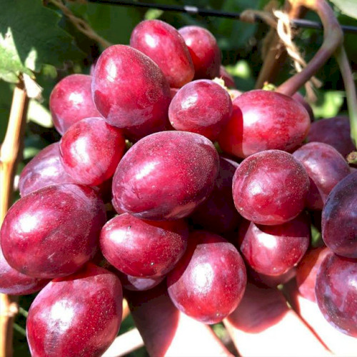 Грона циліндроконусної форми, ошатні, відмінного товарного вигляду, середньо-пухкі, великі, середньою вагою 700 - 1200 гр., і більше. Горошення ягід практично не спостерігається. Ягоди насичено-рожевого забарвлення, овальної форми, великі, масою 12-14 гр, а окремі досягають 18-20гр. М'якоть м'ясиста, соковита. солодка, гармонійного сортового смаку з легким мускатом.
