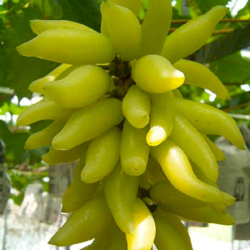 Ягода до 7 см завдовжки, близько 20 грам, незвичайної видовженої форми, дуже схожа на виноград жіночі Пальчики.