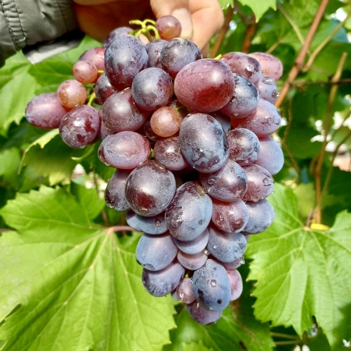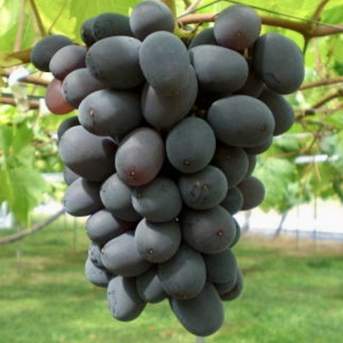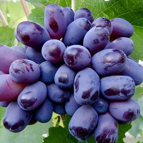 Виноград Усмішка — це вишуканий столовий сорт японської селекції, який поєднує гармонійний смак, привабливий вигляд і відмінну транспортабельність. Його назва з’явилася завдяки незвичайній овальній формі ягід, що нагадують усмішку. Сорт дозріває у середні терміни — зазвичай через 135–145 днів після початку вегетації.