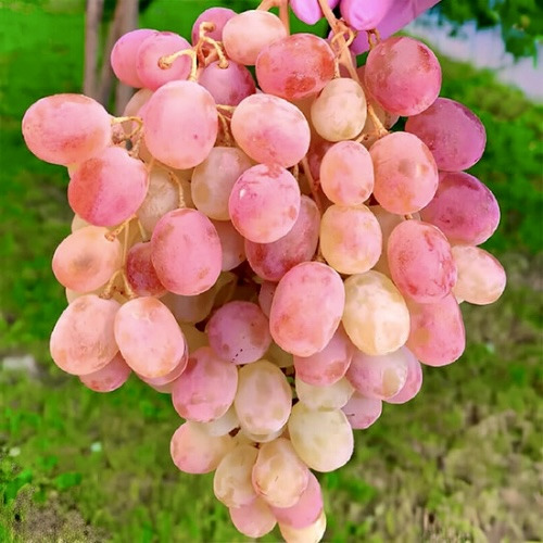 Грона великі, масою від 750 до 1150 г, циліндричної або конічної форми. Ягоди мають елегантний біло-рожевий колір, покриті легким восковим нальотом, середньою вагою 20–25 г і розміром приблизно 50×25 мм. М’якоть щільна, соковита, хрумка, з високим вмістом цукрів і приємним гармонійним смаком. Шкірка середньої щільності, добре пережовується, не заважає під час споживання.
