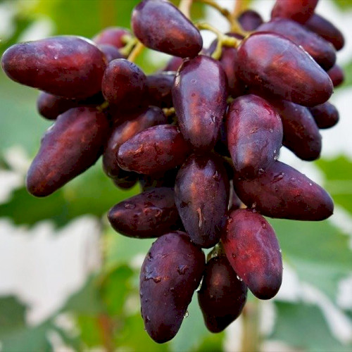 Грони середньощільні 500-800 г, середня маса ягоди 6-7 г, ягоди видовжені, темно-рожеві. М'якуш м'ясисто-соковитий, шкірка тонка. Смак гармонійний, нагадує смак сливи "Ренклод" "Альтана". Транспортабельність висока. Комплексностійка форма до грибкових хвороб.