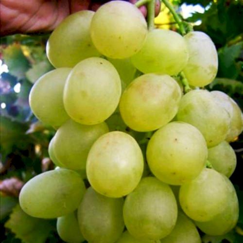 Обрізка лоз плодоношення довга - 8-10 очок. Грона циліндро-конусні, середньої щільності, великі (середні 500-700г, деякі 1500-2500г). Гроно не схильна до горошення. Транспортабельність і товарність високі, осами пошкоджується слабо. Ягоди 15 - 18 гр, округлі, зелено-жовтого кольору з м'ясисто-соковитою м'якоттю і з'їдається із шкіркою. Смак гармонійний приємного мускатного смаку.