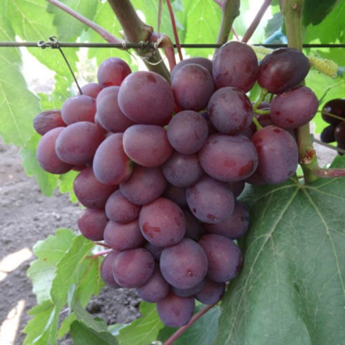 Ягода дуже велика, овальної форми, темно-червоного або фіолетового кольору, покрита пруіновим нальотом. Особливо гарні, якщо стерти пруїн. Вага окремих ягід може досягати до 14 грам. М'якоть щільна і хрустка. Кущі мають хорошу силу росту як в прищепленої культури, так і кореневласної. Дає хороший урожай і непогано справляється з навантаженням.