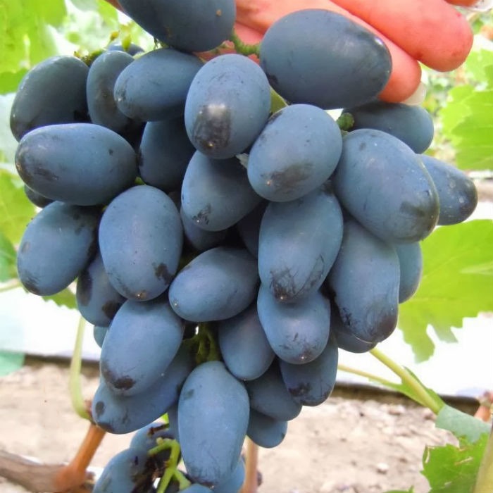 Грона великі, конусної форми середньої щільності або пухкі. Ягода велика, конусної або соскоподібної форми, вагою 8-12 грам. М'якіть щільна з хорошим сортовим смаком. Шкірочка середньої щільності, зовсім не псує смакові відчуття. Смак гармонійний. Стійкість до захворювань 3-4 бали.