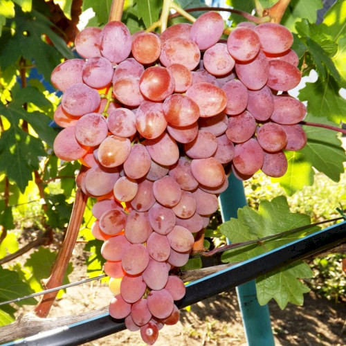Ягоди великі, масою 8-10 г, розміром 32х24 мм, оригінальної овальної, або подовжено-яйцевидної форми, рожеві. Дуже приємно- гармонійного смаку, при повному дозріванні з легким мускатним ароматом. М'якіть м'ясисто-соковита. Шкірочка середньої товщини, при їжі не відчувається. Визрівання пагонів хороше. Оптимальне навантаження на кущ 30-35 очка.