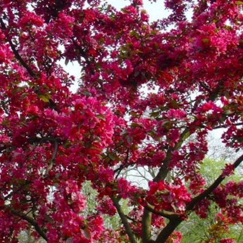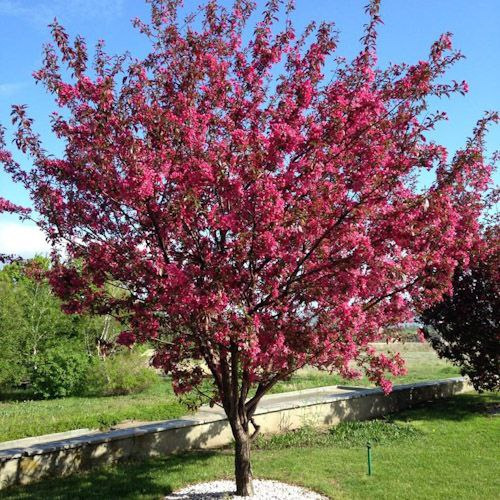 Опис виду: деревця маленькі, з повільними темпами зростання, їх максимальна висота не перевищує 4 - 6 метрів. Іноді дерева приймають форму декоративного куща. Крона овальна і досягає в діаметрі 4 - 5 метрів, в молодому віці вона більш компактна, але з часом стає ширшою і розлогою. Якщо обрізку крони не проводити, то поступово вона набуває вигляду неправильного овалу або кулі. Листя пурпурні, квітки великі, червоні, квітнення рясне. Місце посадки - поодинці і невеликими групами на відкритих сонячних майданчиках, разом з іншими деревними породами. Декоративна яблуня Роялті є однією з гібридних форм пурпурової яблуні, виведеної на основі середньоазіатської яблуні Недзвецького.