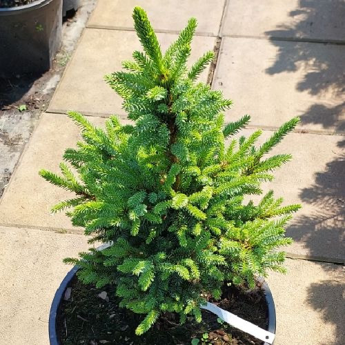 Ялина двокольорова дуже ефектна карликова ялина з різнокольоровою кроною. Хвоя з двоколірними голками – зелені зверху та сріблясто-блакитні знизу та відтінком жовтого на найбільш відкритих поверхнях, що дає гарний триколірний ефект. Молоді шишки пурпурно-червоні, потім буріють. Крона може бути широкопірамідальною при збереженні центрального пагону або у вигляді копини. Висота дорослої 10-річної рослини – 1,2 – 1,8 м.