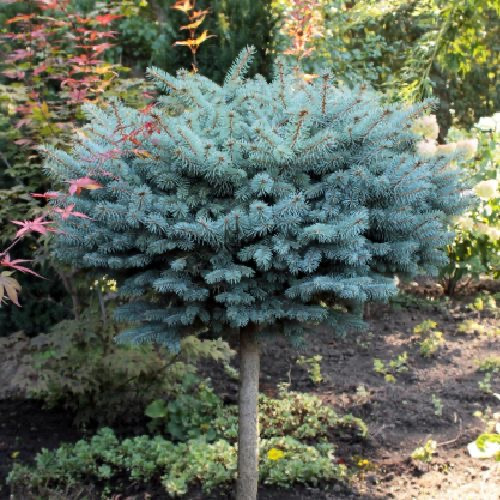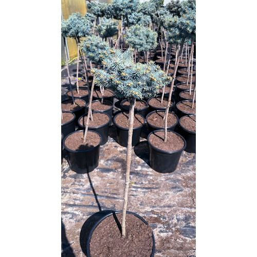 Ялина колюча Глаука Глобоза на штамбі - карликовий хвойний сорт дерева. Гілки ялини мають сріблясто-синій колір, що створює незвичайний ефект. Рослина висотою до 1,5 метрів і шириною до 1 метра.