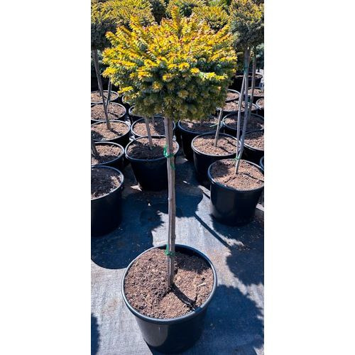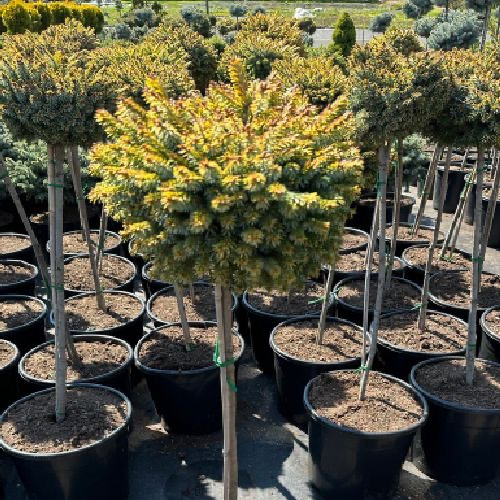 Ялина сербська Певе Тіджін (Picea omorika Peve Tijn) - повільно зростаючий хвойник, карликової о конічної форми. Крона, в молодому віці - куляста. Щорічне зростання до 8 см у висоту і до 6 см в ширину. У 10-річному віці висота рослини 1-1,5 м. Хвоя триколірна - зверху жовто-зелена, знизу сріблясто-зелена. Молоді прирости золотистого кольору. Віддає перевагу сонячним місцям. Переносить невелике затінення. Віддає перевагу свіжим суглинки з кислою реакцією, необхідний дренаж. Не переносить ущільнення грунту і застою води.Морозостійкість до -29 ºС. Відмінний сорт для маленьких садків, альпінаріїв та вересових садів.
