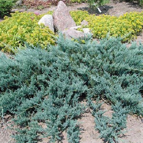 Ялівець горизонтальний "Айс Блю" повільно зростаючий, повзучий, хвойний чагарник, заввишки 5-10 см і 1-1,5 м в діаметрі. Крона округла, дуже щільна. Гілки поступово розходяться в сторони від центру і стелиться по землі. Молоді прирости піднесені вгору і розгорнуті в площині, надаючи ялівцю трохи кучерявого вигляду. Хвоя блакитна із сріблястим відливом, дуже ніжна. Після перших заморозків стає фіолетовим. До ґрунтового складу вимоги не надто високі. Для успішного зростання підходять слабокислі дреновані суглинки. Добре відгукується на додатковий полив у посушливу пору року, головне не допускати сильного ущільнення та застійного перезволоження субстрату. Для посадки бажано вибирати найбільш сонячні місця, що провітрюються. Ялівець горизонтальний Айс Блю добре відгукується на внесення комплексних мінеральних добрив та неглибоке розпушування ґрунту після поливу. Ялівець горизонтальний Айс Блю висаджується на передньому плані міксбордерів. Добре поєднується з дрібними породами листяних та хвойних рослин. Ідеальна рослина для посадок на краю підпірних стін, на альпійських гірках та в японських садах. Ялівець Айс Блю має високу зимостійкість.
