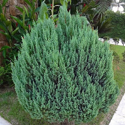 Ялівець китайський Стрикта - чагарник з конусоподібною формою крони й щільними вертикально зростаючими гілками.