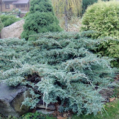 Ялівець лускатий Блю Карпет – це декоративний вічнозелений чагарник із горизонтальною, розкидистою кроною, який відомий своїм здатністю швидко розростатися і покривати землю густим сріблясто-блакитним килимом. Цей сорт може досягати висоти до 0,5 метрів і ширини до 2-2,5 метрів у десятирічному віці, а з часом виростає до 80 см у висоту та до 5 метрів у ширину.