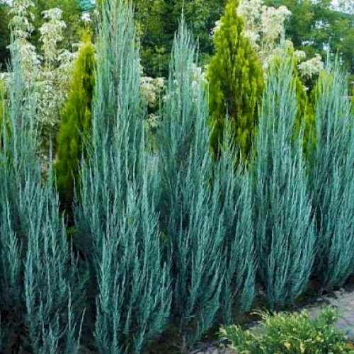 Ялівець скельний "Блю Ерроу" (Juniperus scopulorum "Blue Arrow") — декоративний вузькоколоновидний чагарник, який цінується за свою компактну форму та яскраво-блакитну хвою. Завдяки вертикально зростаючим, щільно прилягаючим до стовбура гілкам, рослина зберігає охайний вигляд протягом усього року, не вимагаючи складного догляду.