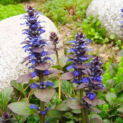 Форма: Декоративно-листяна, ґрунтопокривна, напіввічнозелена рослина з сланкими пагонами, що легко вкорінюються, та утворюють дуже щільні килими висотою 10-20 см. Вишневе-коричневі листя створюють прекрасний фон для блакитних кольорів. Під час цвітіння випускає квітконоси заввишки до 30 см.