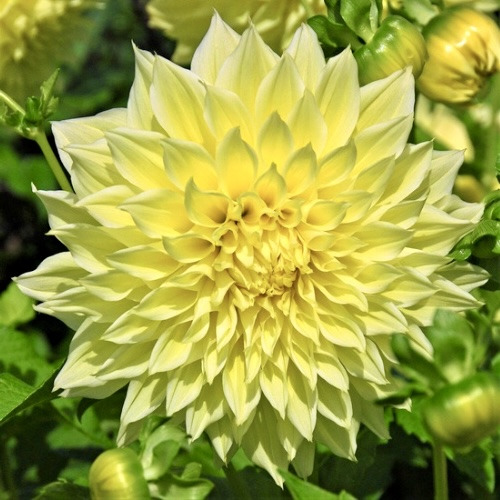 Жоржина Kelvin Floodlight — високорослий сорт, що вражає великими квітковими кошиками яскраво-жовтого кольору. Висота дорослої рослини досягає 90 см, а діаметр квітів перевищує 20 см. Цвітіння триває з липня до перших заморозків, наповнюючи сад ефектними суцвіттями.