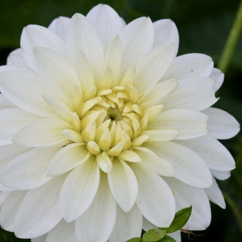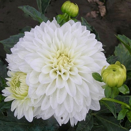 Квітки жоржини Gallery Art Fair махрові, пишні, діаметром 10-15 см. Вони мають унікальне двоколірне забарвлення: кремово-жовта серединка плавно переходить у молочно-білі пелюстки. Рослина радує безперервним і рясним цвітінням із кінця червня до перших осінніх заморозків.