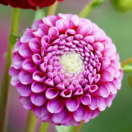 Жоржина Chick A Dee US — вишуканий сорт з групи помпонних жоржин, який привертає увагу своїми гармонійно складеними суцвіттями. Її квітки формуються з безлічі щільно розташованих трубчастих пелюсток, що створюють ефект м'якого помпону. Відтінки рожевого і червоного плавно переходять один в один, надаючи рослині особливої декоративності. Висота куща досягає 80-90 см, а яскраво-зелене листя і червонуваті пагони підкреслюють вишукану красу цього сорту.